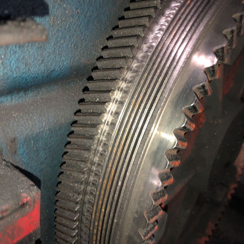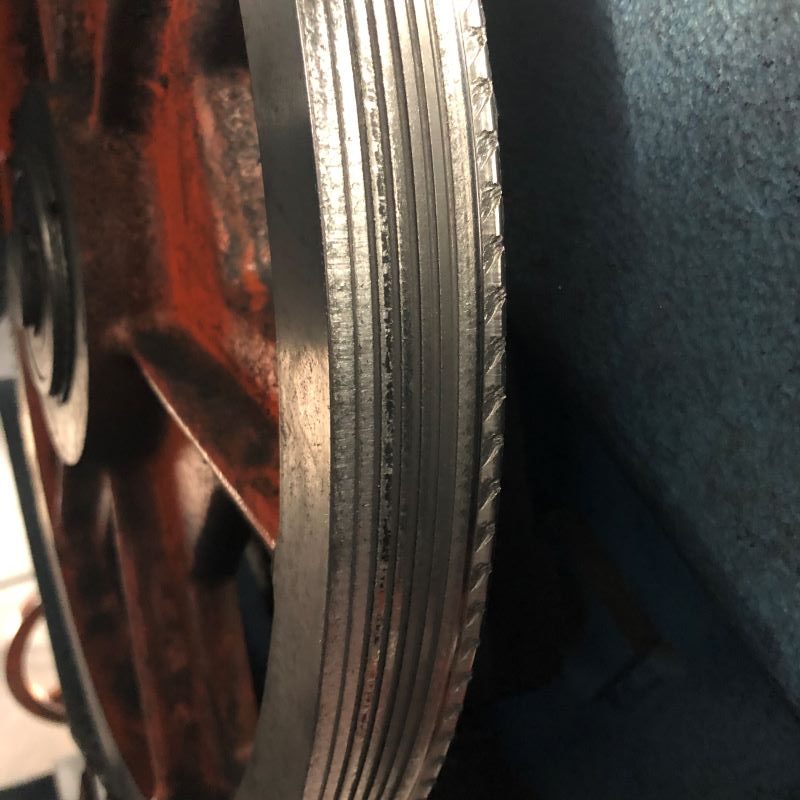 Shoulder worn off drive wheel due to improper tracking
